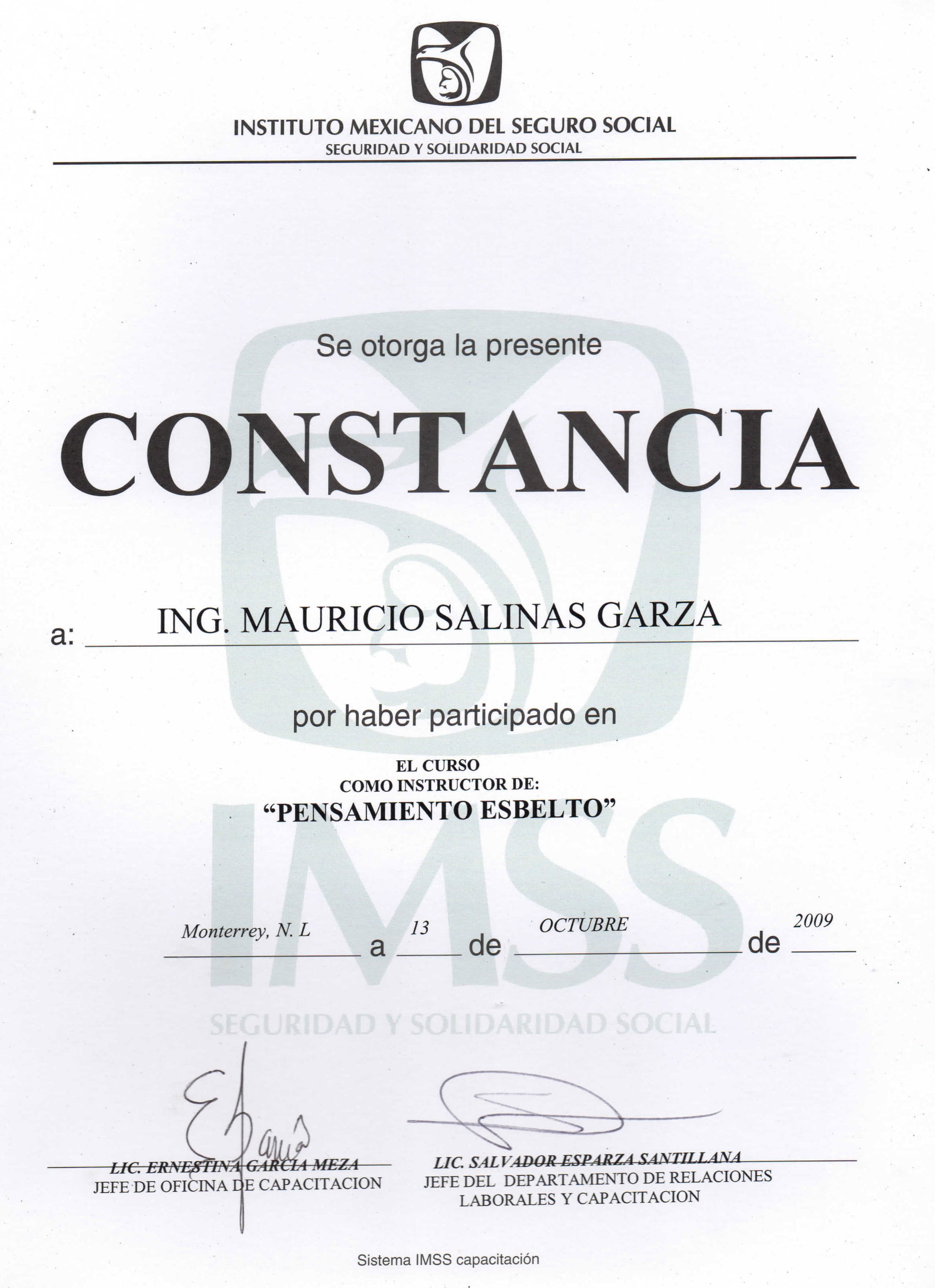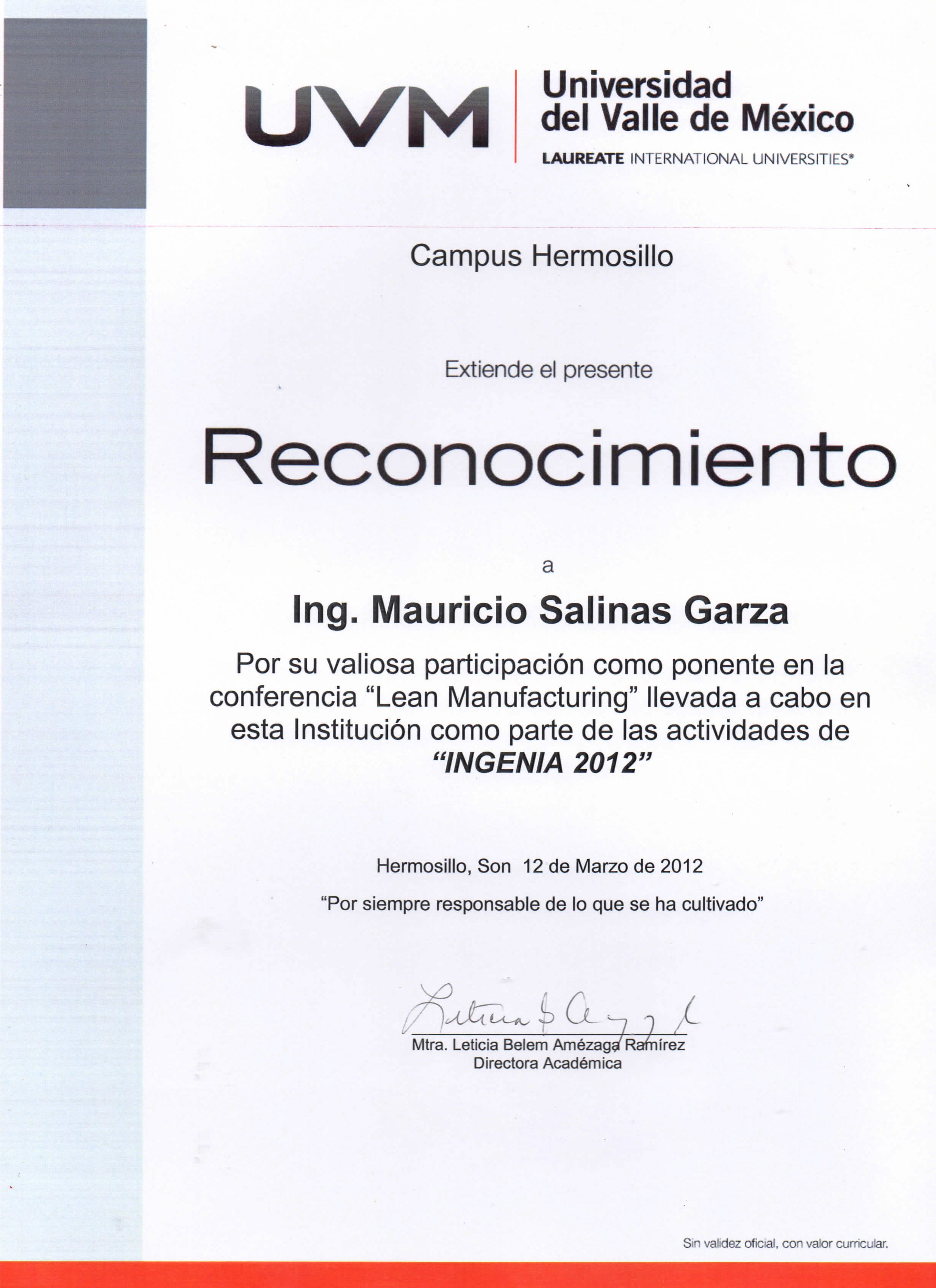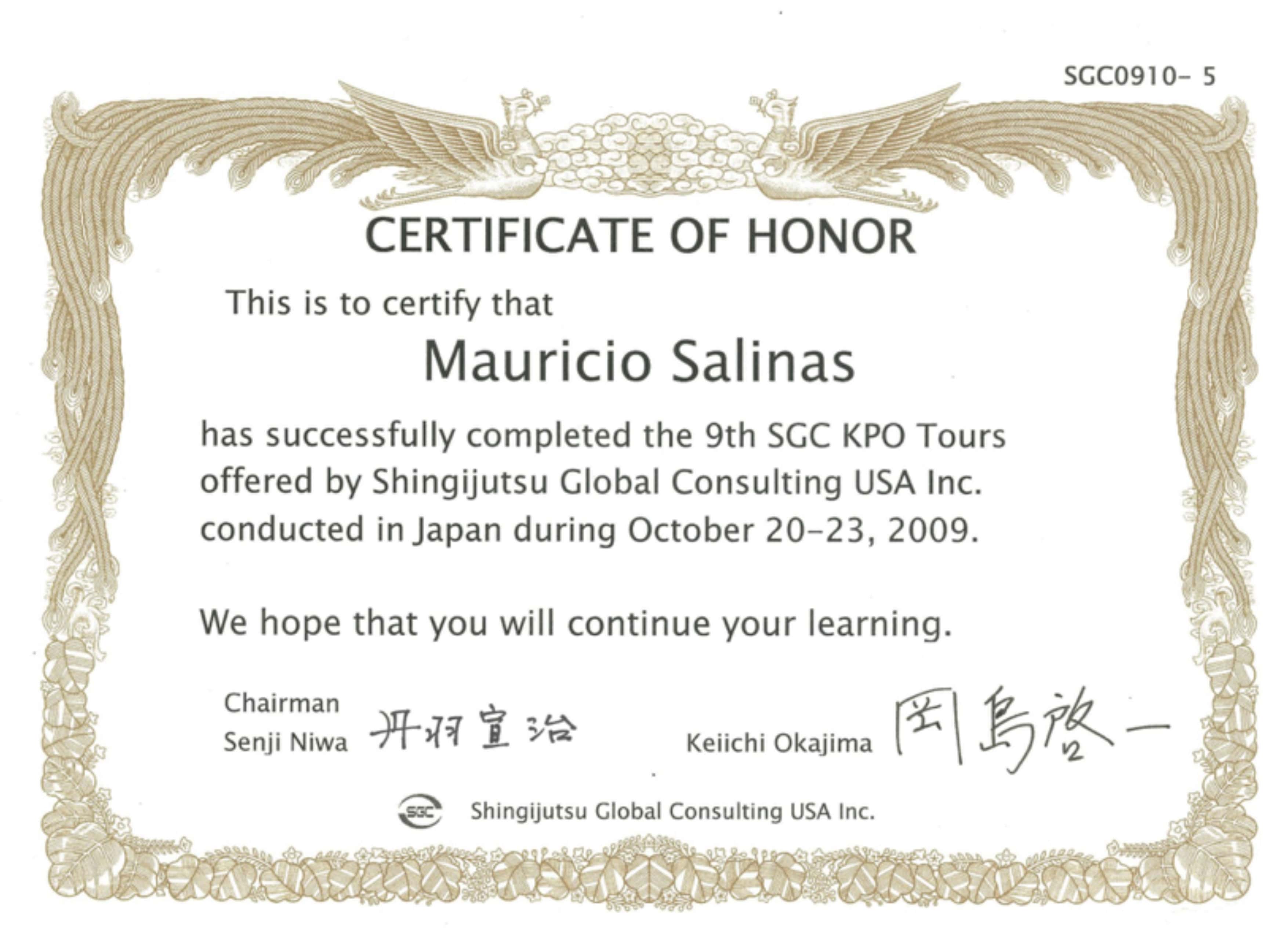 Con gran orgullo les compartimos parte de las ceritificaciones y reconocimientos que a lo largo de su vida nuestro Director General el Ing. Mauricio Salinas a cosechado a través de una gran y éxitosa carrera en el mundo del Lean Manufacturing.