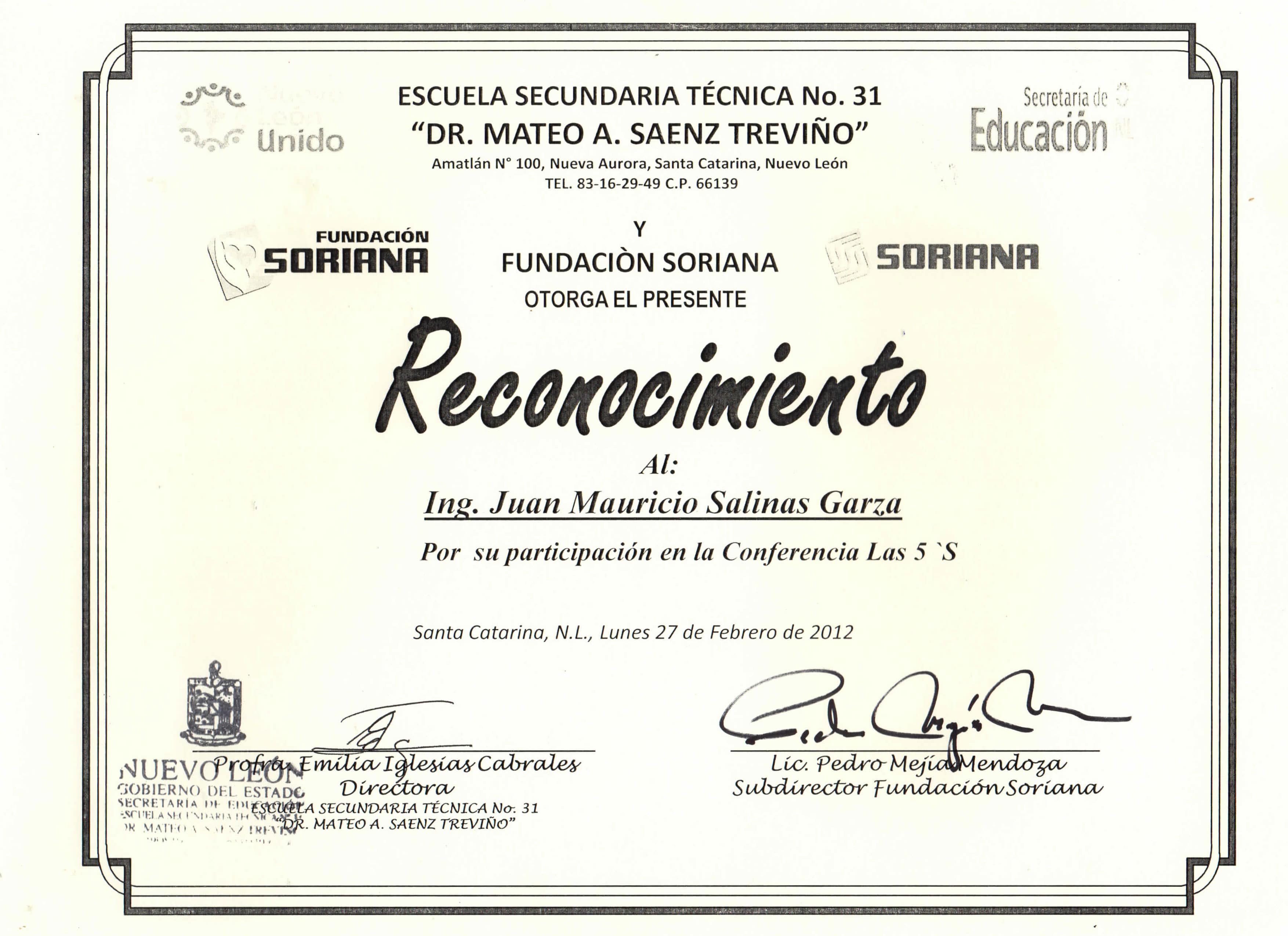 Conferencia de 5S´s. Escuela Secundaria, Mateo A. Sáenz Treviño. Fundación Soriana