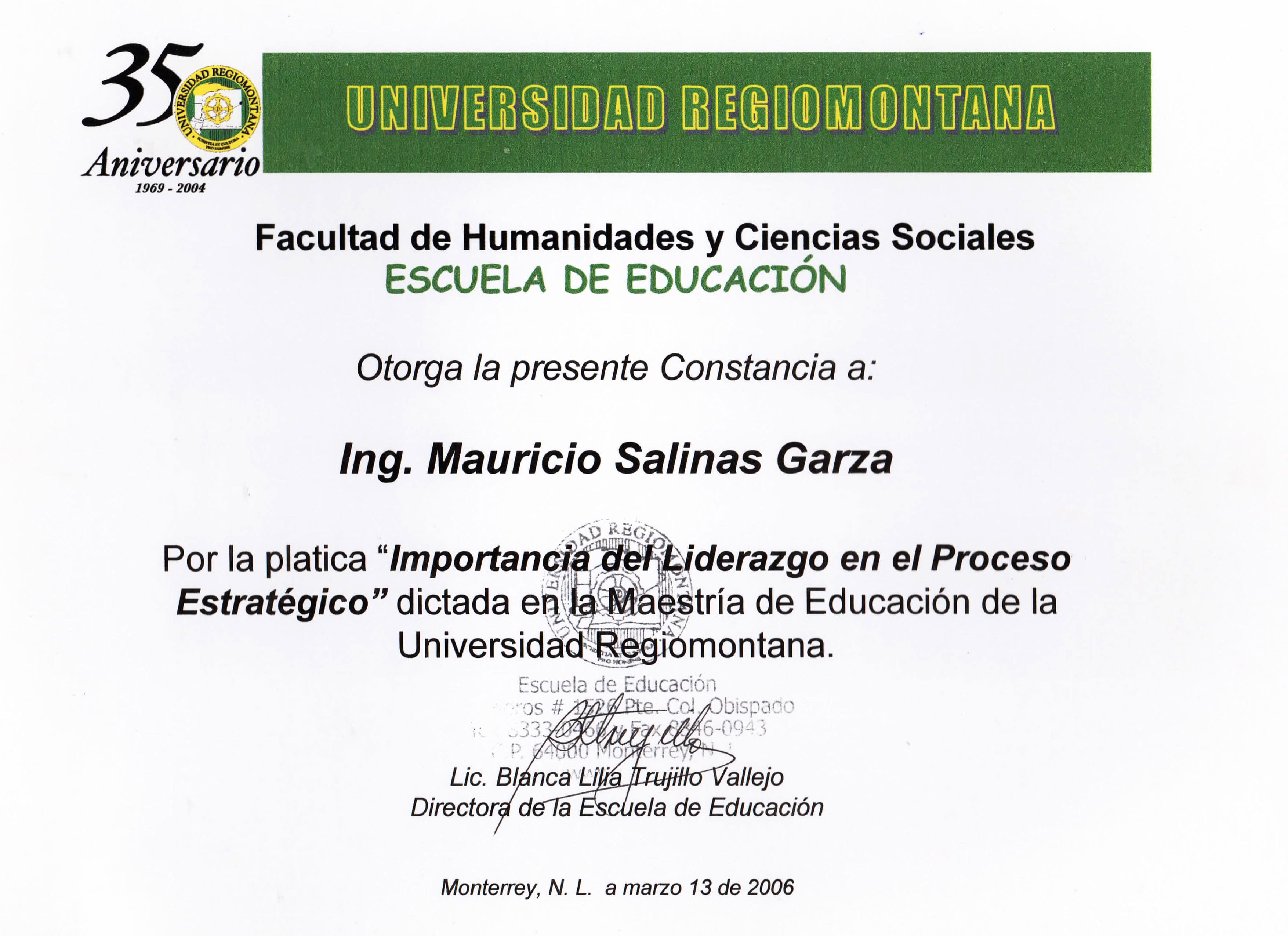 Conferencia de la Importancia del Liderazgo en el Proceso Estratégico, Universidad Regiomontana.